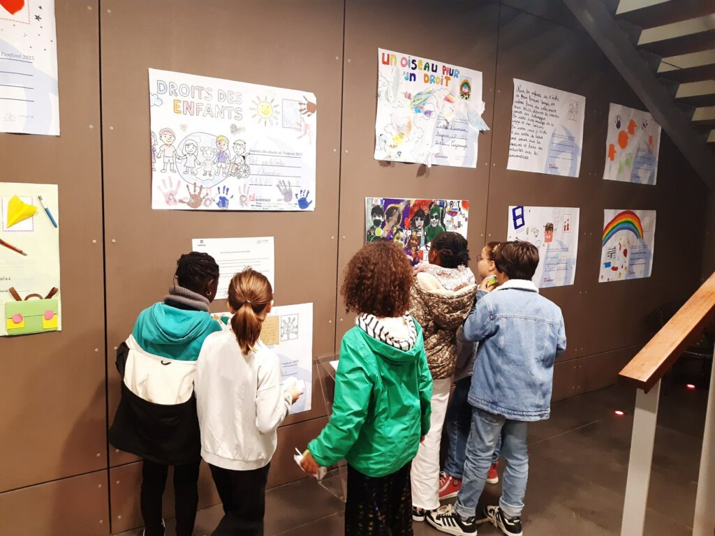 Journée droit des enfants - Cartes postales géantes exposées à la bibliothèque Mériadeck
