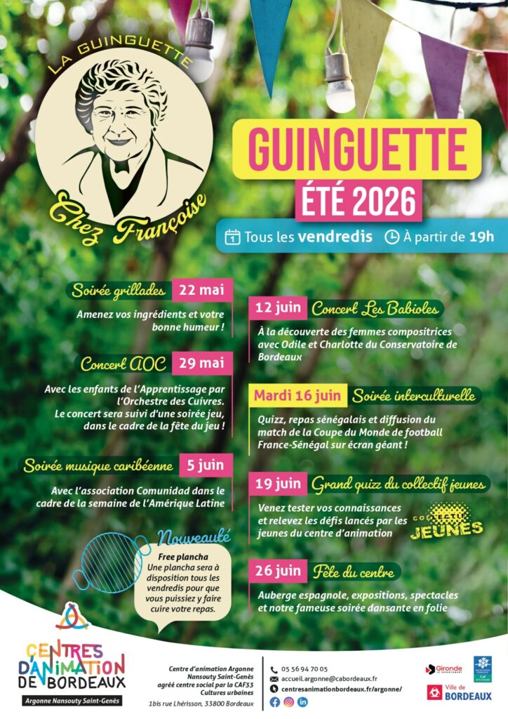 Ouverture de la guinguette Ven 22 MAI 19h00 et 29/05/202605/06/202612/06/202616/06/202619/06/2026