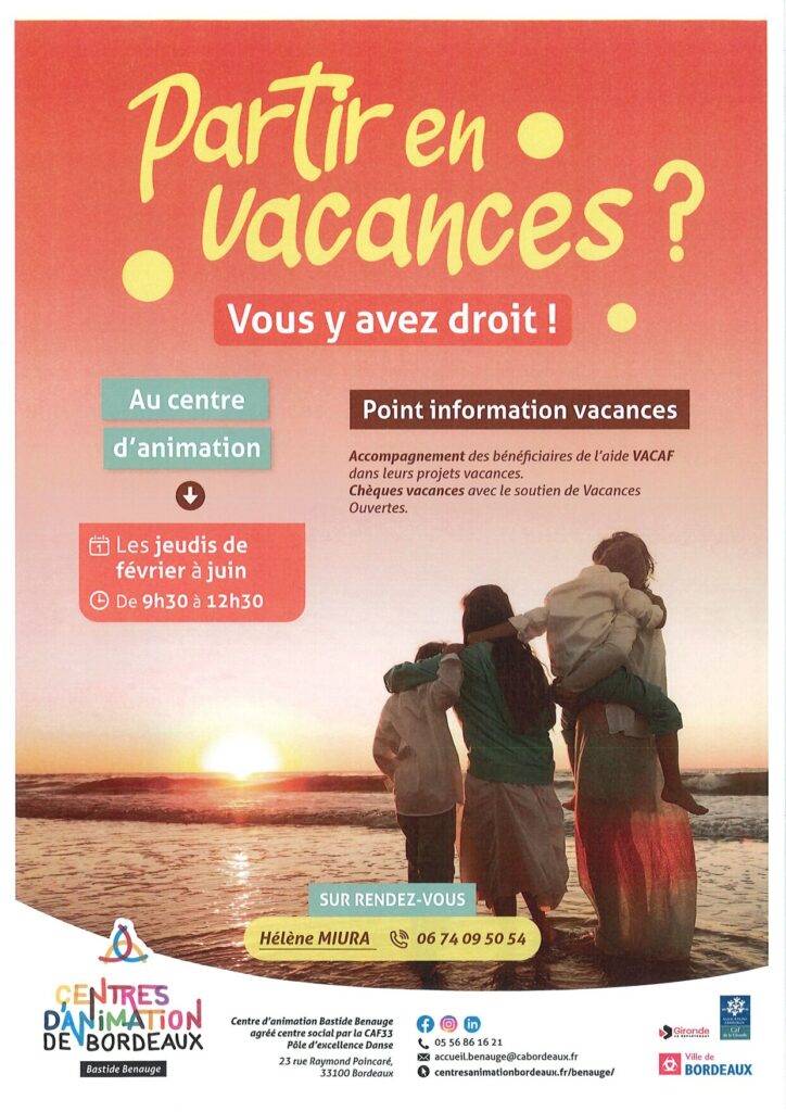 Cette permanence est un moment d’échange, d’écoute et de conseils personnalisés, afin de faciliter l’accès aux vacances.