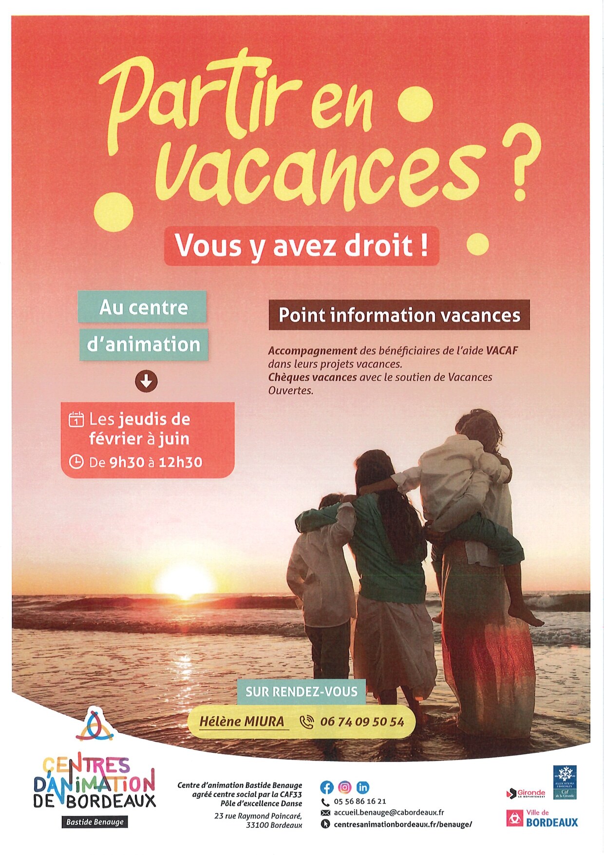 Cette permanence est un moment d’échange, d’écoute et de conseils personnalisés, afin de faciliter l’accès aux vacances.