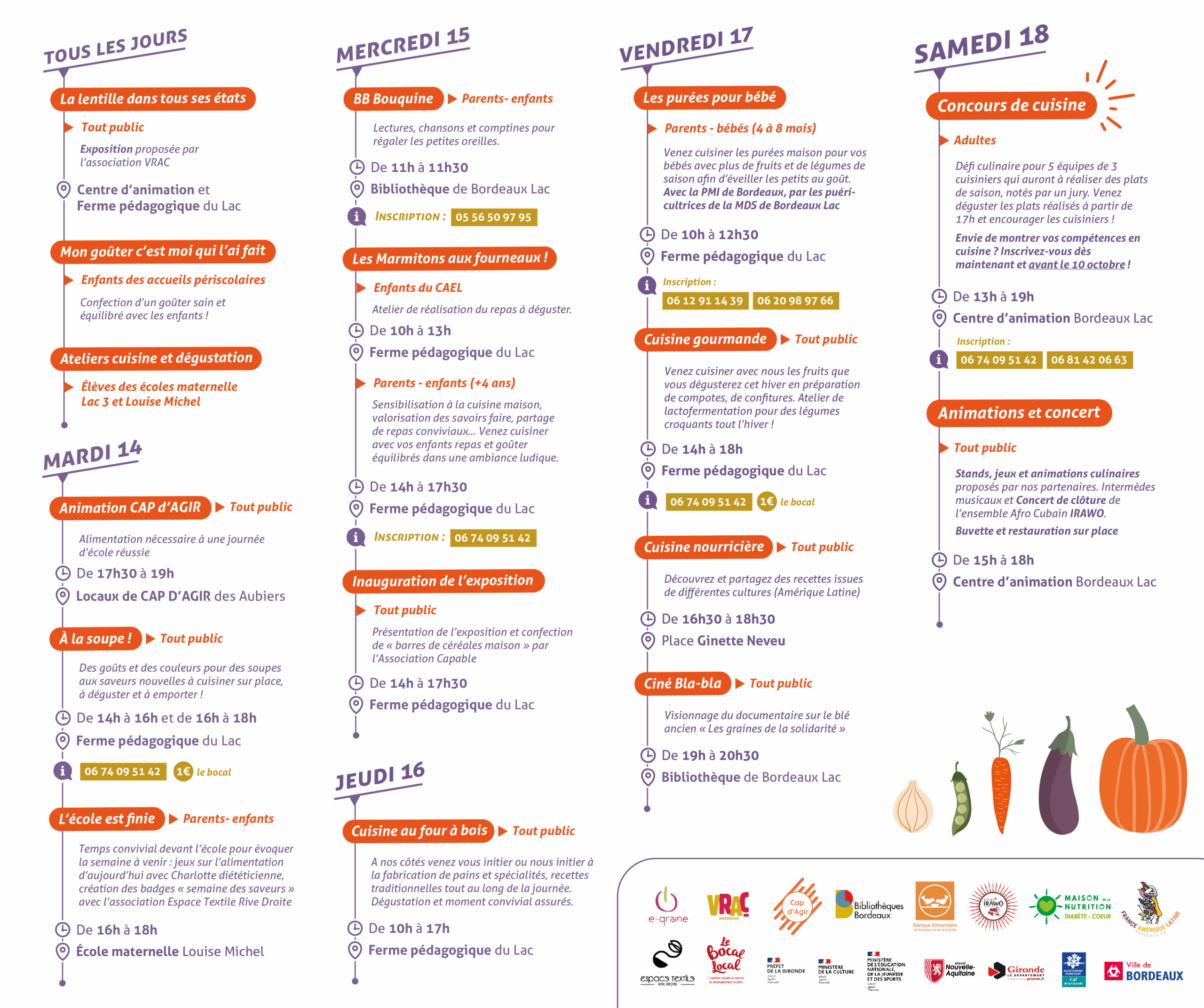 Festival Bon Mar 14 OCT 09h00 keyboard_arrow_right Sam 18 OCT h