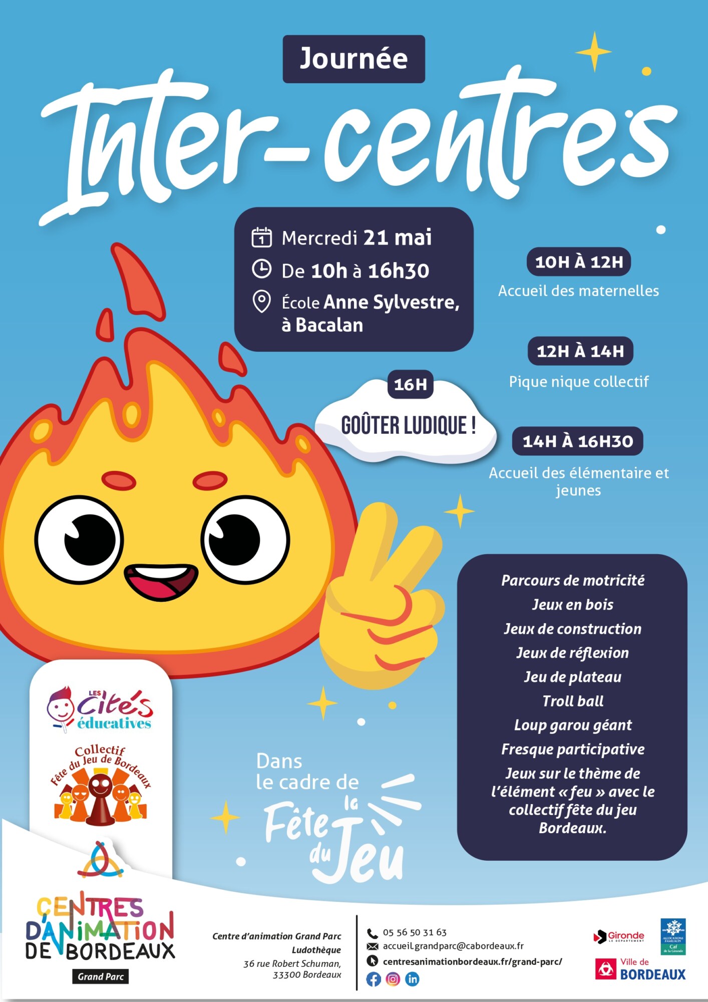 De 10h à 12h accueil des maternelles : De 12h à 14h pique-nique pour tous De14h à 16h30 accueil des élémentaire et jeunes A 16h goûter