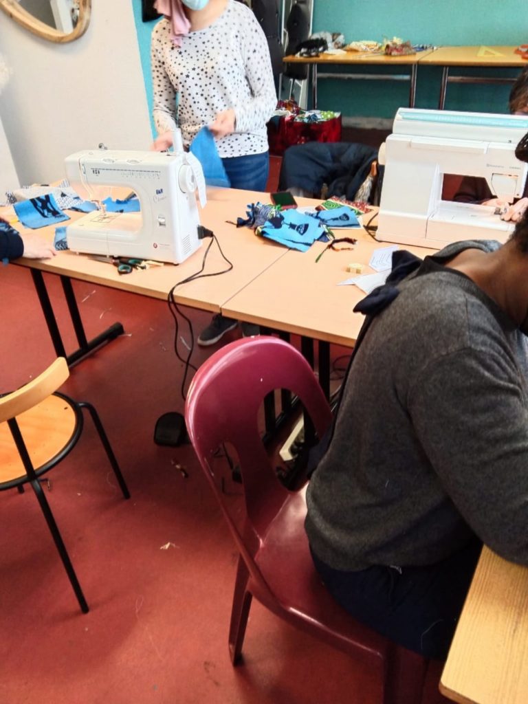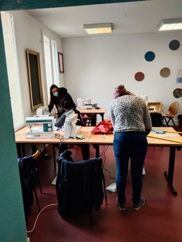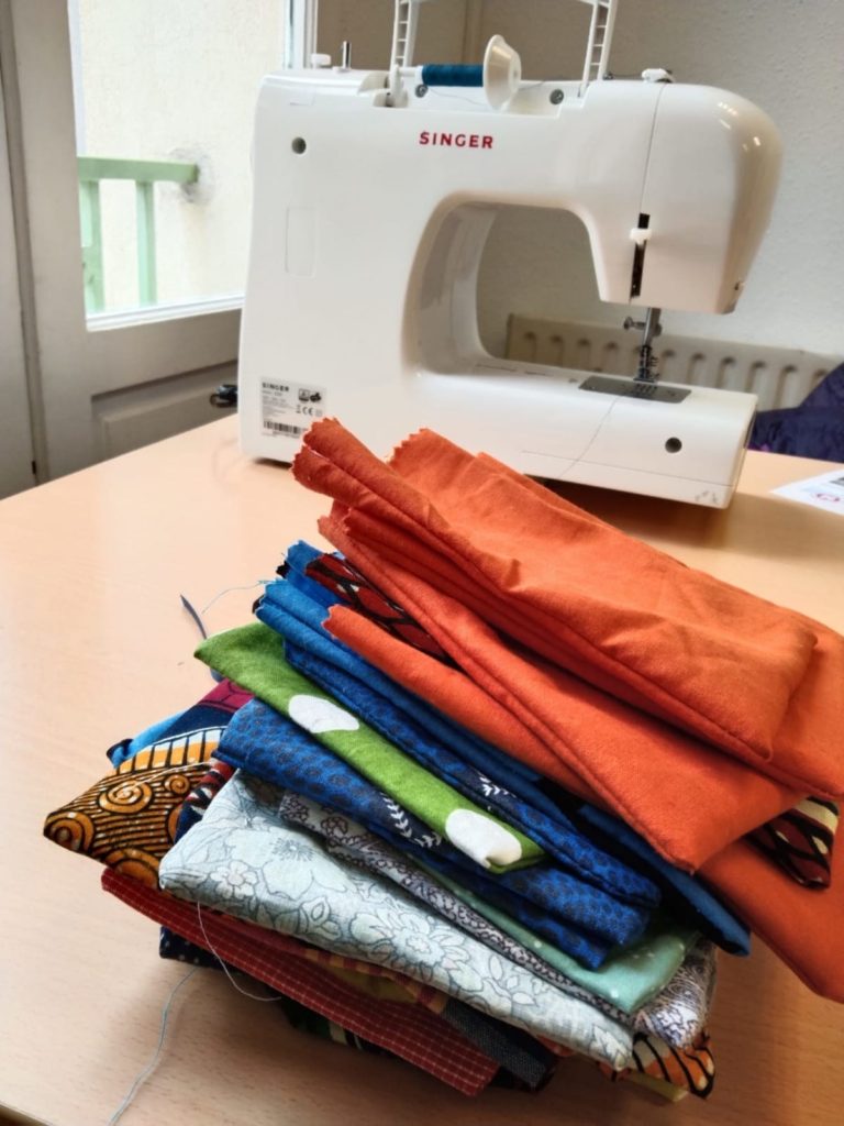Lors d’un atelier couture en mars 2022, des bénévoles du centre d’animation et de l’Épicerie Solidaire ont réalisé 80 mini sacs à vrac . Ces sacs à vrac ont ensuite été garnis des ingrédients nécessaires à la confection de la lessive maison ( savon de Marseille, bicarbonate de soude, recette de la lessive maison) et distribués à l’Épicerie solidaire.