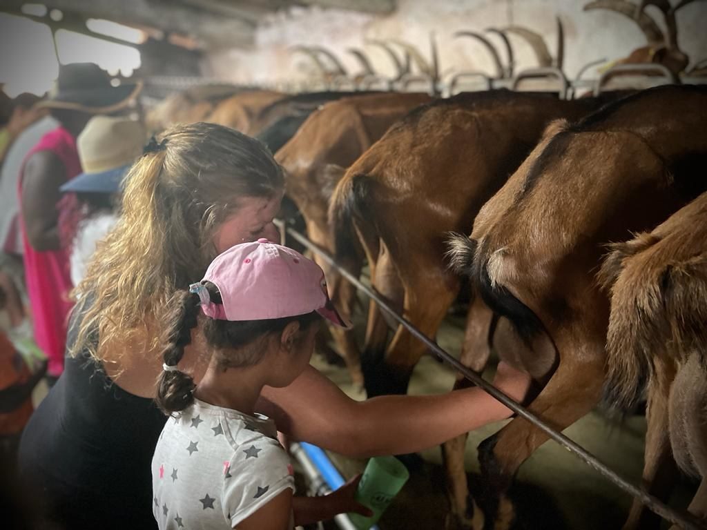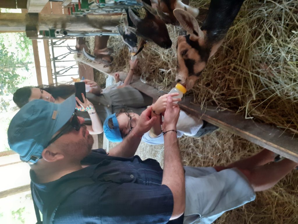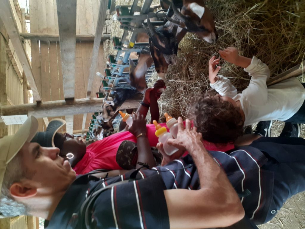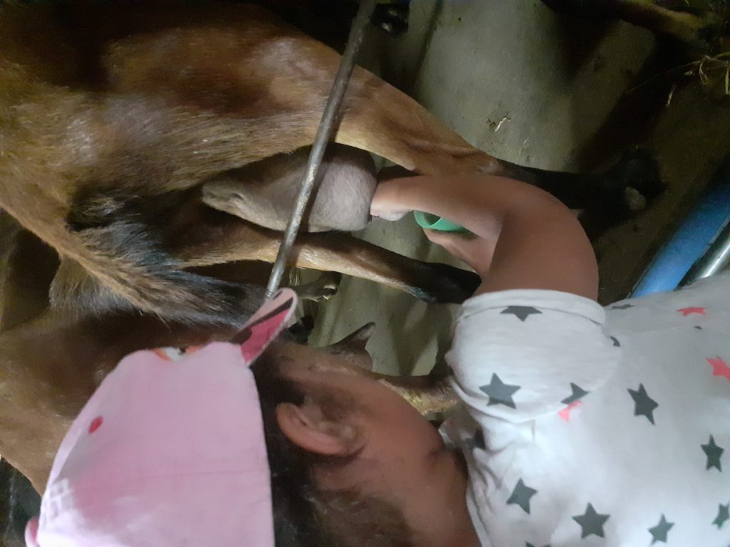 Lors de cette journée, les familles ont pu traire à la main les chèvres et déguster le lait cru, réaliser du fromage frais, donner le biberon aux chevrettes et confectionner du pain, à partir de farine biologique, mais également déguster un panier pique nique avec des produits locaux biologiques et se balader dans le ferme, à la rencontre des différents animaux ( poules, canards, cochons, vache landaise, tortue, lapin…)