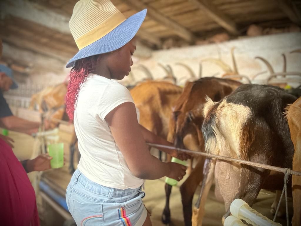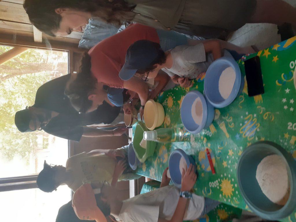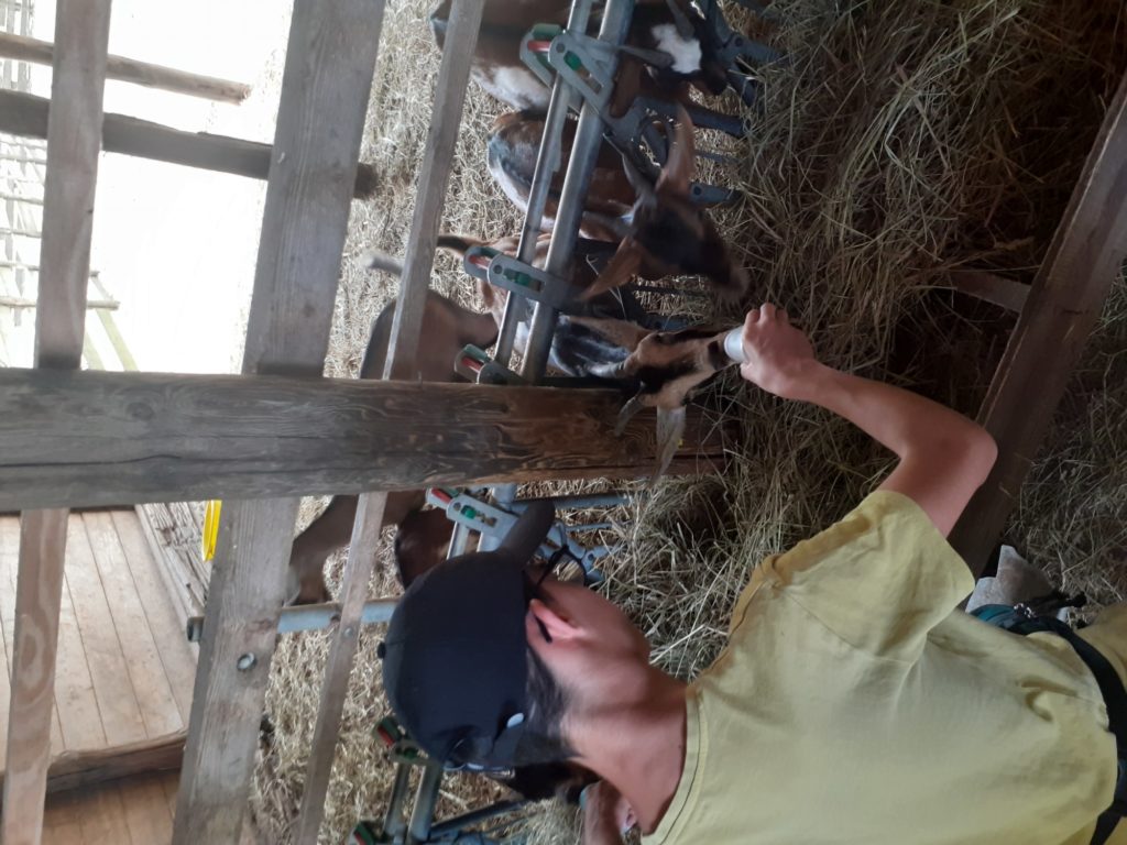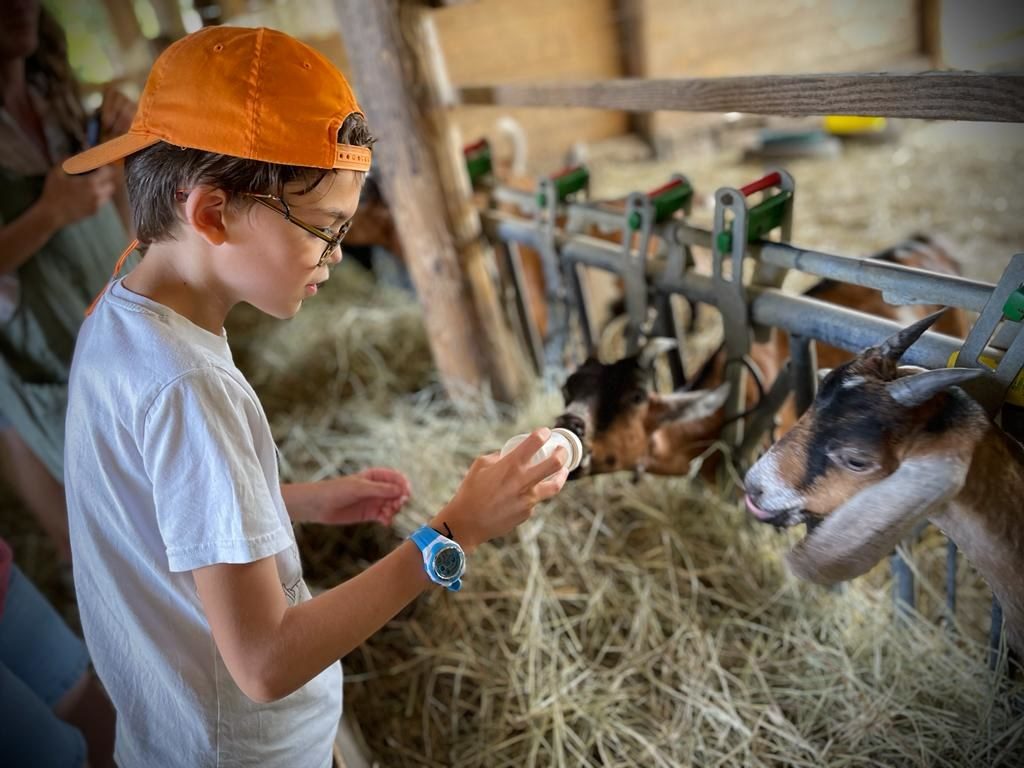 Lors de cette journée, les familles ont pu traire à la main les chèvres et déguster le lait cru, réaliser du fromage frais, donner le biberon aux chevrettes et confectionner du pain, à partir de farine biologique, mais également déguster un panier pique nique avec des produits locaux biologiques et se balader dans le ferme, à la rencontre des différents animaux ( poules, canards, cochons, vache landaise, tortue, lapin…)