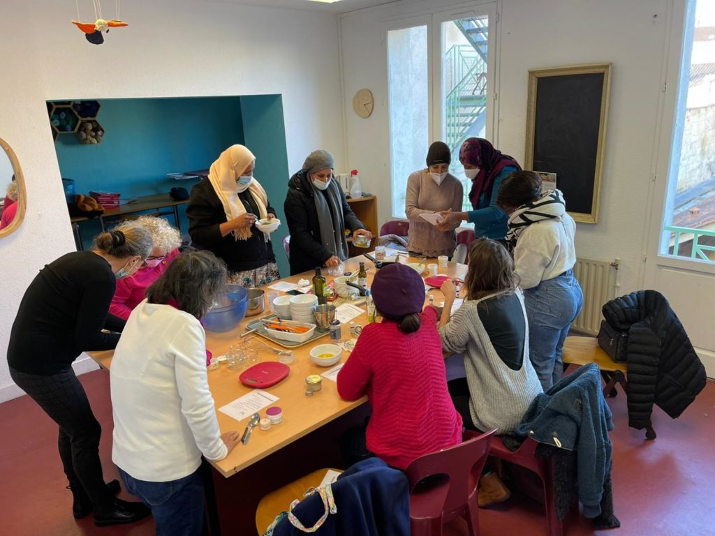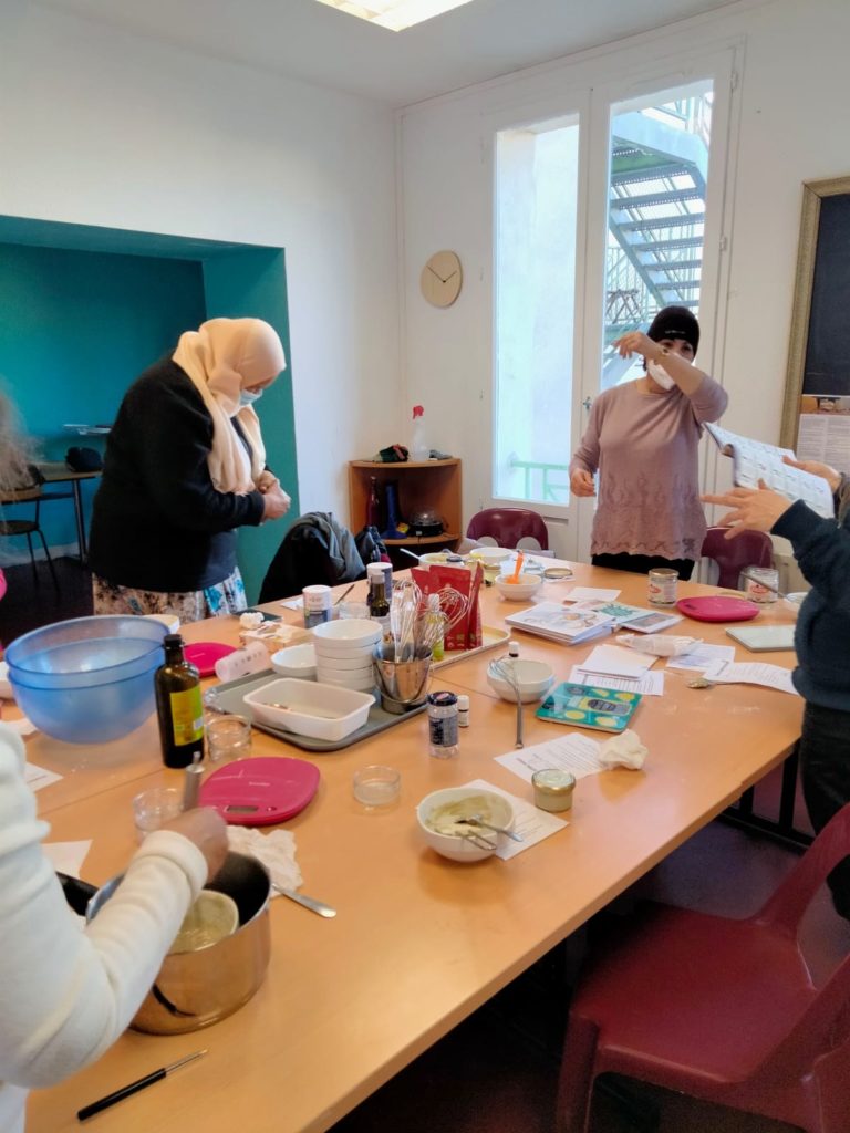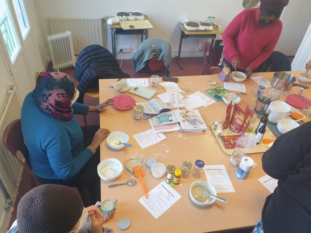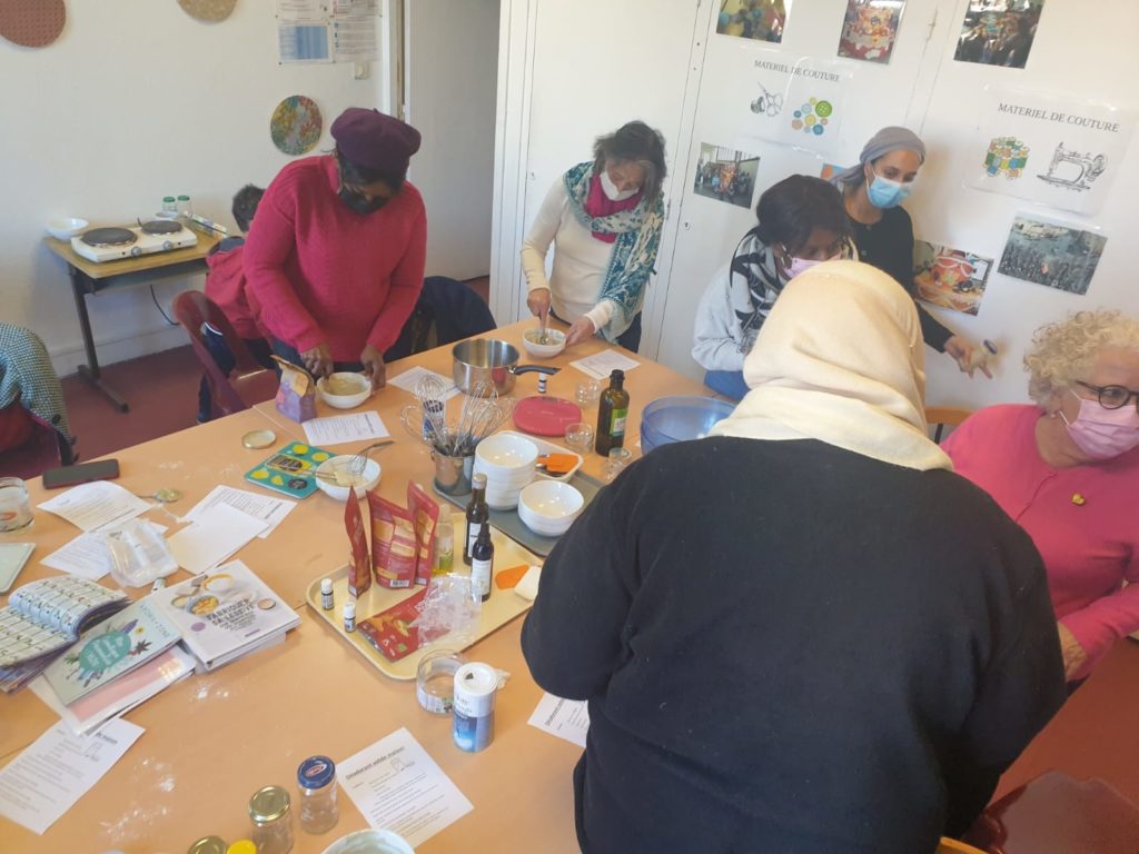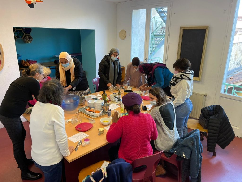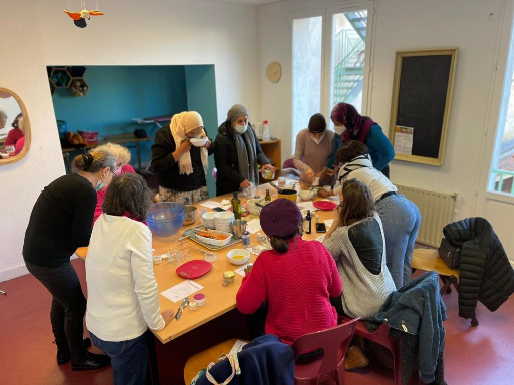 Lors d’un atelier cosmétique, des adhérentes du centre