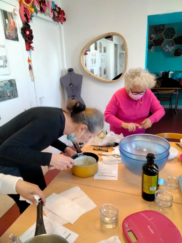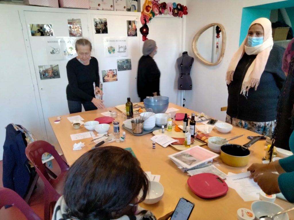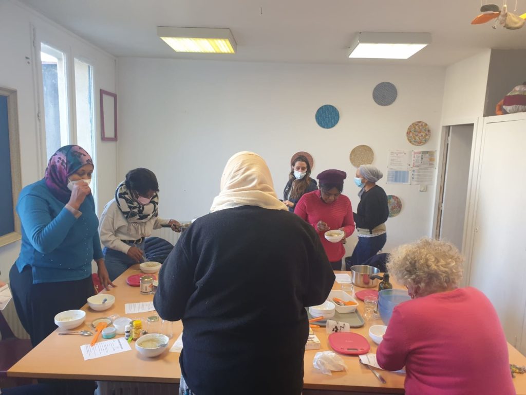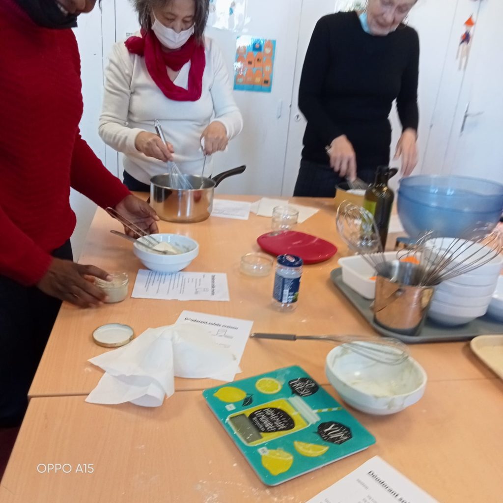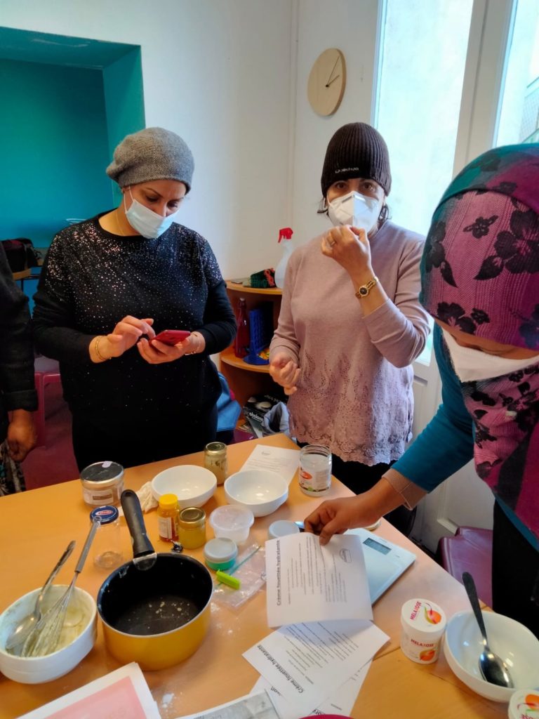 Lors d’un atelier cosmétique, des adhérentes du centre