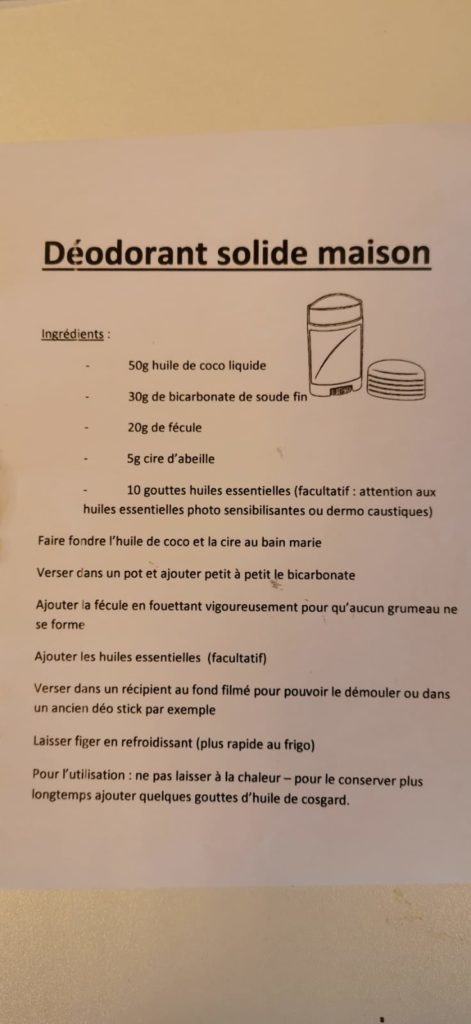 d’animation ont pu fabriquer du déodorant solide et de la crème